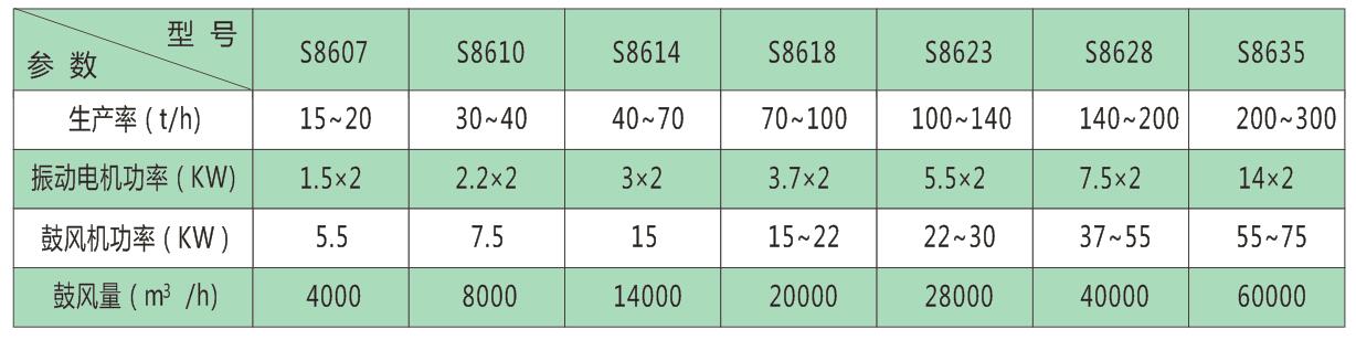 本系列設備主要用于粘土舊砂的冷卻。熱砂進入處于 振動狀態的孔板(魚鱗孔板)上,鼓風系統從孔板下部鼓 入冷風,使砂層呈沸騰狀態,熱交換充分,氣體從頂部排 出,帶走大量熱量,舊砂得以冷卻。